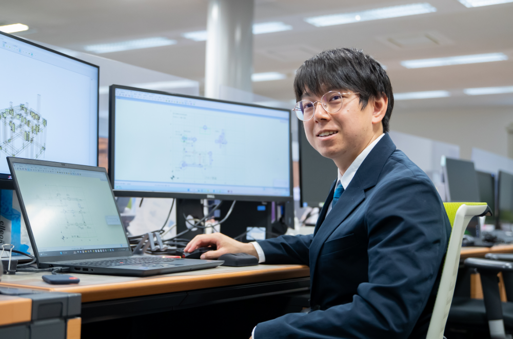 私は学生時代、情報工学を学んでいたので、仕事をするならITをメインサービスとする企業でSEやSIerと考えていました。「新しいことを、自分の力でできる会社」という希望があったので、できるだけニッチで少数精鋭の企業が良いと思っていたところに、ぴったり当てはまるネットイーグルと出会いました。木造プレカットのCAD/CAMというあまり一般的には知られていない業界で常に新しい事業をやっているという点にも魅力を感じました。入社後は研修目的で設計部に配属され、建物がどう組み上がるのか、ユーザーはどのような入力作業をするのかなど基本的なことを学び、その後、カスタマーエンジニアとして業務に従事することになります。